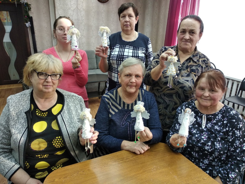 Отдыхающие отделения дневного пребывания на кружке " Волшебный клубочек" изготовили игрушку - ангела.