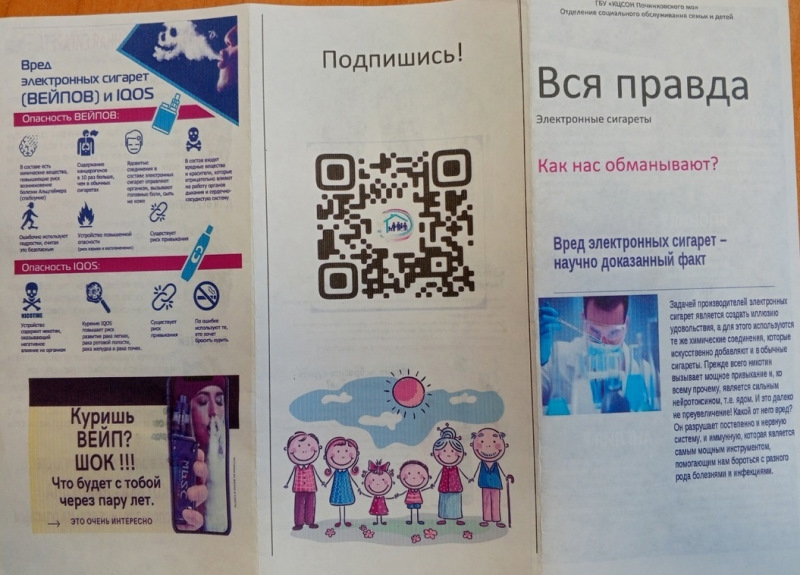 Сотрудники отделения социального обслуживания семьи и детей ГБУ «КЦСОН Починковского муниципального округа» провели акцию «Вся правда о вреде электронных сигарет».